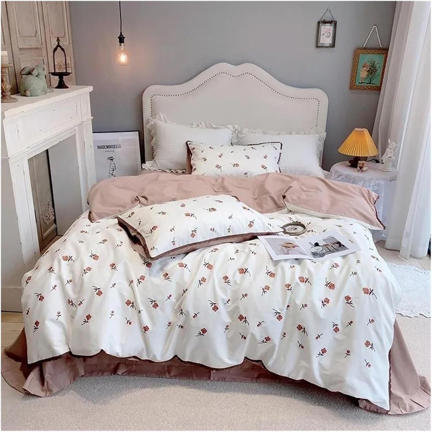 Flat sheet styleQueen size 200X230cm 4pcs 1 piece Duvet Cover: 200*230cm(79*91inches)1 piece Flat bed sheet: 245*250cm(96*98inches)2 pieces Pillowcases: 48*74cm(19*30inches)King size 220X240cm 4pcs 1 piece Duvet Cover: 220*240cm(87*94inches)1 piece Flat bed sheet: 245*270cm(96*106inches)2 pieces Pillowcases: 48*74cm(19*30inches)Fitted sheet styleQueen size 200X230cm 4pcs 1 piece Duvet Cover: 200*230cm(79*91inches)1 piece Fitted sheet : 160*200+25cm(63*79+9.8inches)2 pieces Pillowcases: 48*74cm(19*30inches)King size 220X240cm 4pcs 1 piece Duvet Cover: 220*240cm(87*94inches)1 piece Fitted Sheet: 180*200+25cm(71*79+9.8inches)2 pieces Pillowcases: 48*74cm(19*30inches)