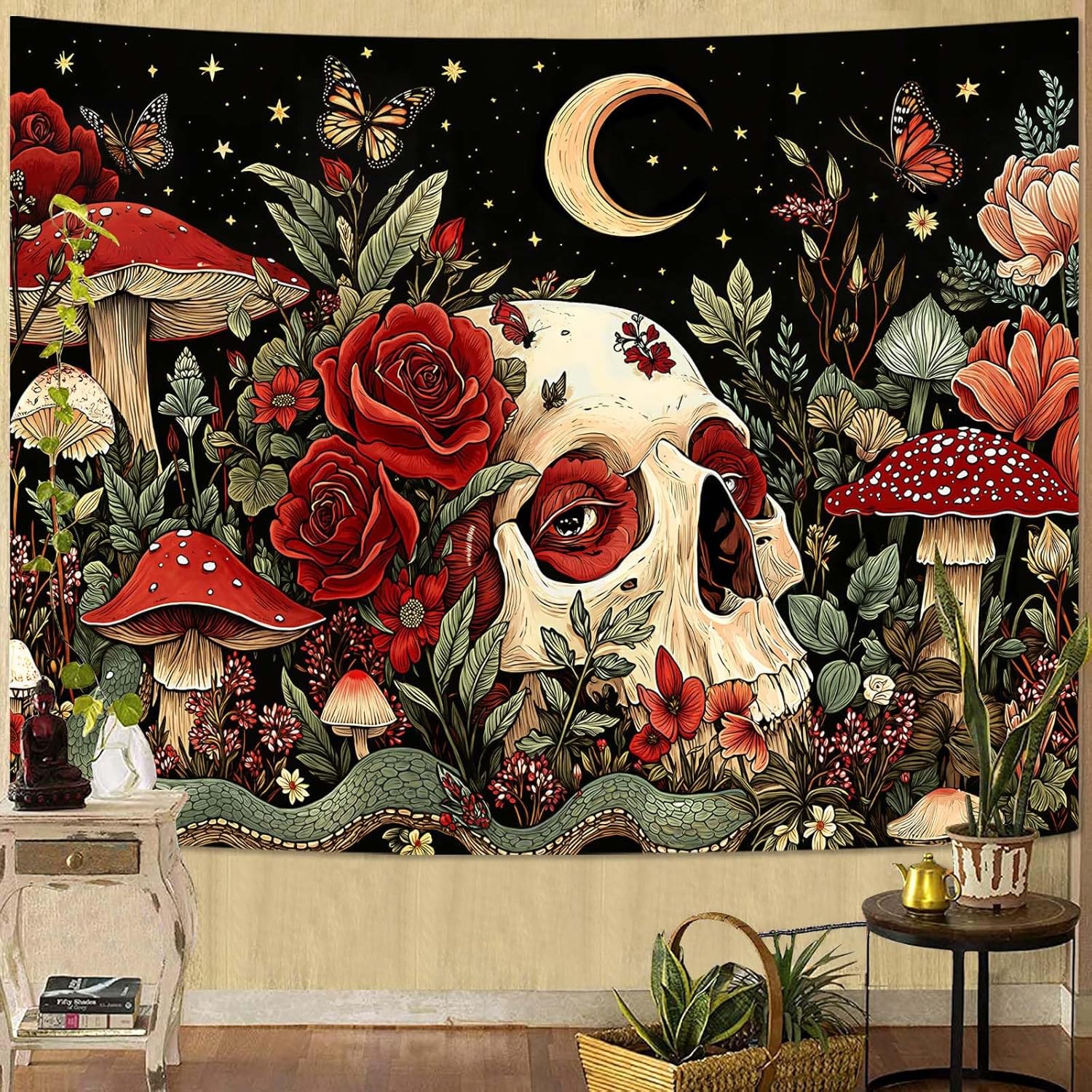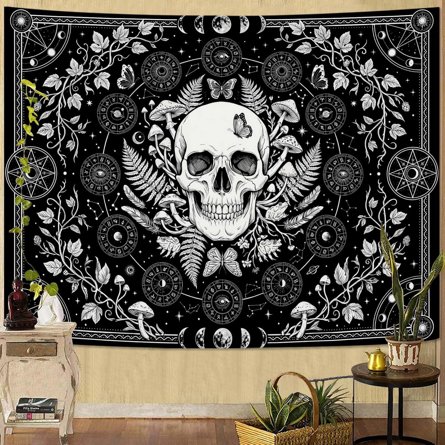 Transform your sanctuary with the Kanuyee Fantast meditating skeleton tapestry, a captivating piece of fantasy art that infuses your space with deep meaning and vibrant beauty. This mushroom wall art tapestry showcases a serene skeleton amidst a rich landscape of mystical fungi and cosmic light, making it an ideal gothic or boho aesthetic addition for bedroom decor, dorm room decor, or any living area. Crafted from soft, durable polyester, this premium wall hanging ensures lasting color vibrancy and intricate detail. Its versatile design allows it to transcend mere wall art, serving beautifully as a bedspread, meditation backdrop, or unique accent for your personal space. Available in multiple sizes, this spiritual decor tapestry invites contemplation and artistic expression into your home.